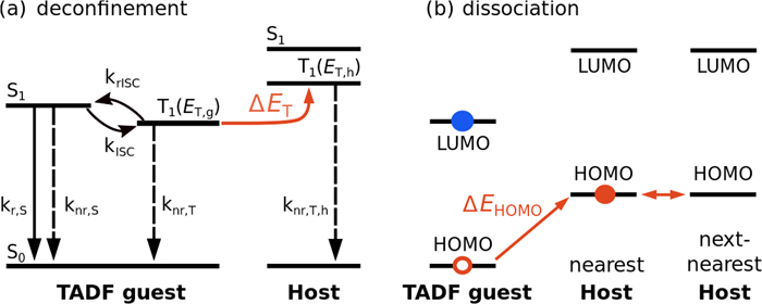 Suppressing exciton deconfinement and dissociation for efficient thermally activated delayed fluorescence OLEDs