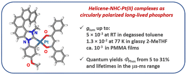 Enantiopure cycloplatinated pentahelicenic N-heterocyclic carbenic complexes that display long-lived circularly polarized phosphorescence